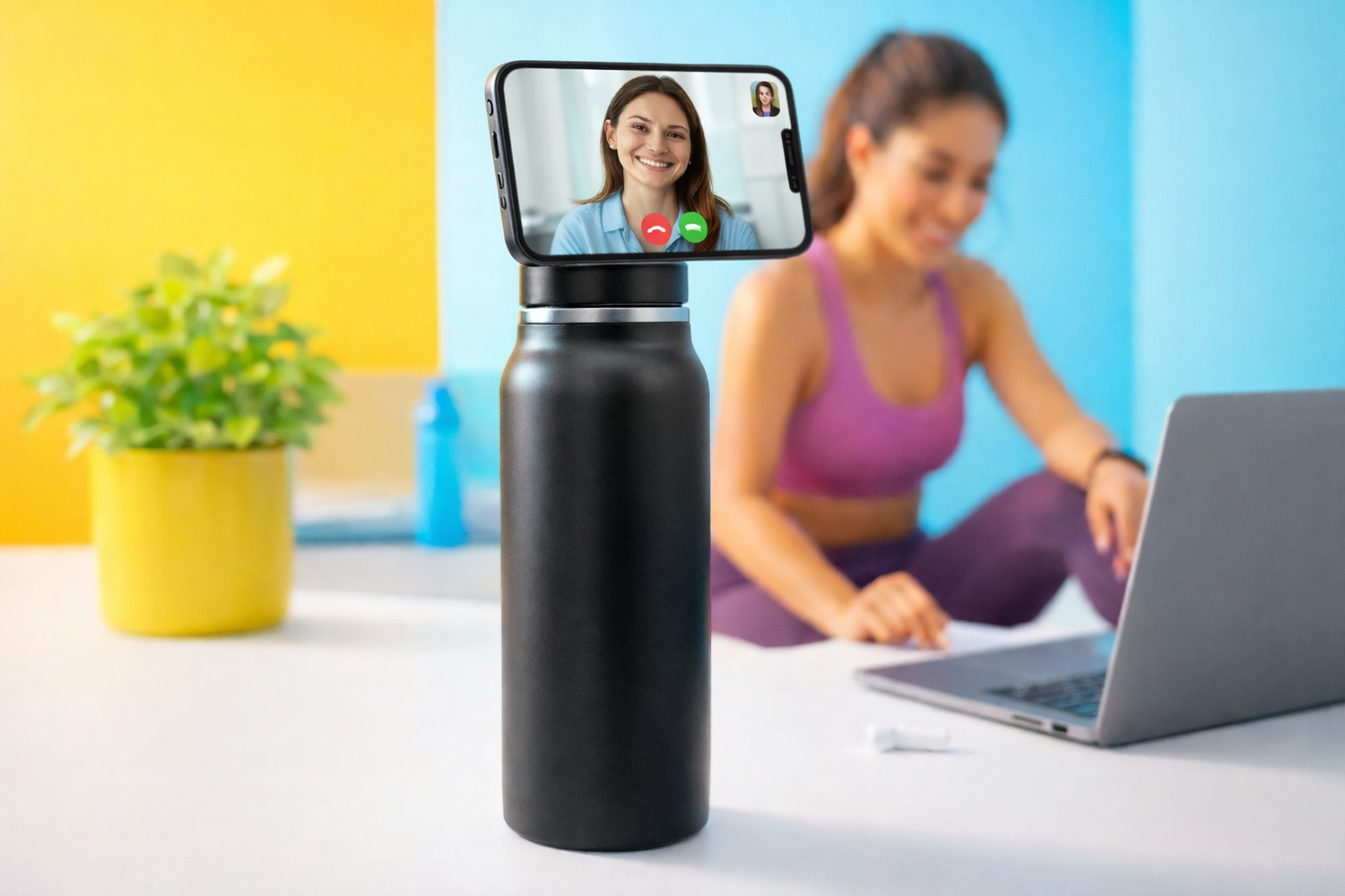 El termo 2 en 1 con soporte magnético que mantiene tu bebida fría o caliente mientras tu celular queda fijo, seguro y siempre visible. Ideal para gym, trabajo y estudio.